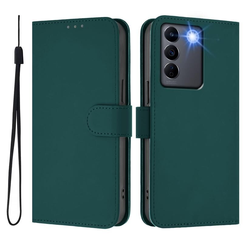 Θήκη τηλεφώνου από δέρμα με συμπαγή χρώματα και αίσθηση δέρματος για vivo V27 5G / V27 Pro 5G (Καφέ) με κορδόνι.