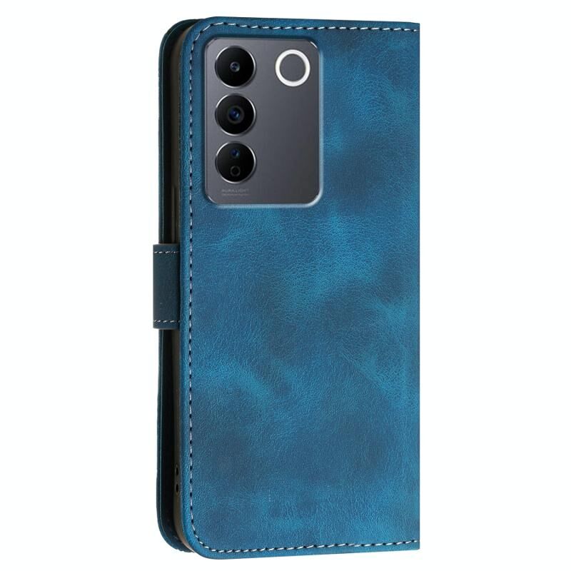 Θήκη τηλεφώνου δερμάτινη με ανάγλυφο σχέδιο πεταλούδας και κορδόνι για vivo V27 Pro 5G Global Grid (Σκούρο Μπλε)