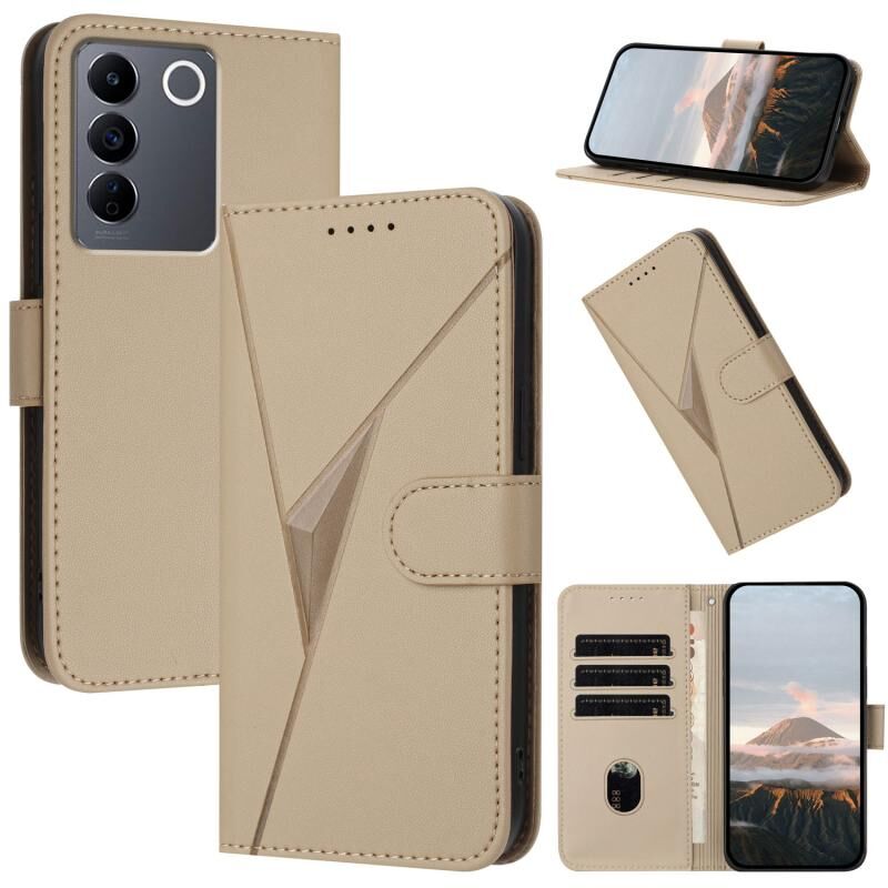 Για vivo V27 Τρίγωνο μοτίβο αγκράφα κούμπωμα δερμάτινη θήκη τηλεφώνου (Χρυσός)