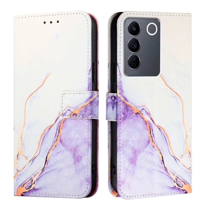 Θήκη τηλεφώνου από δέρμα με σχέδιο μαρμάρου για vivo V27 / V27 Pro 5G Global PT003 (Ροζ Μωβ Χρυσό)