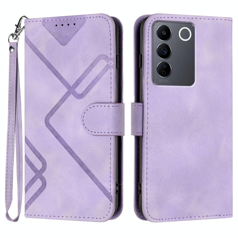 For vivo V27e 4G Global/T2 4G Global Line Pattern Skin Feel Leather Phone Case(Light Purple)