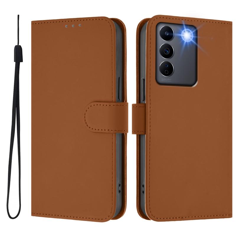 For vivo V27E 4G Global / T2 4G Global Skin Feel Solid Color Leather Phone Case with Lanyard(Brown)