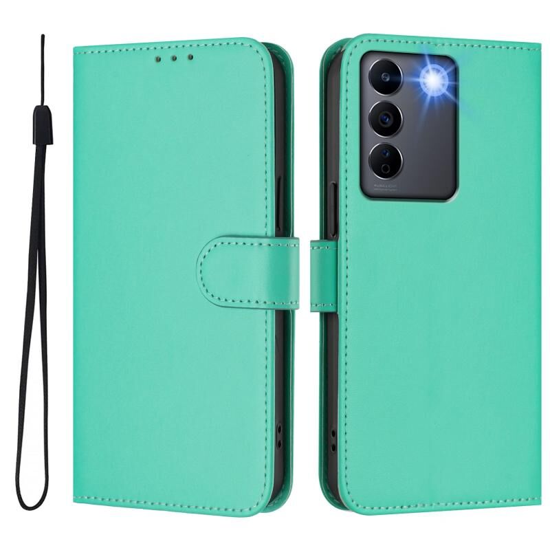 Θήκη τηλεφώνου από δέρμα με συμπαγή χρώμα για vivo V27E 4G Global / T2 4G Global με κορδόνι (Καφέ)