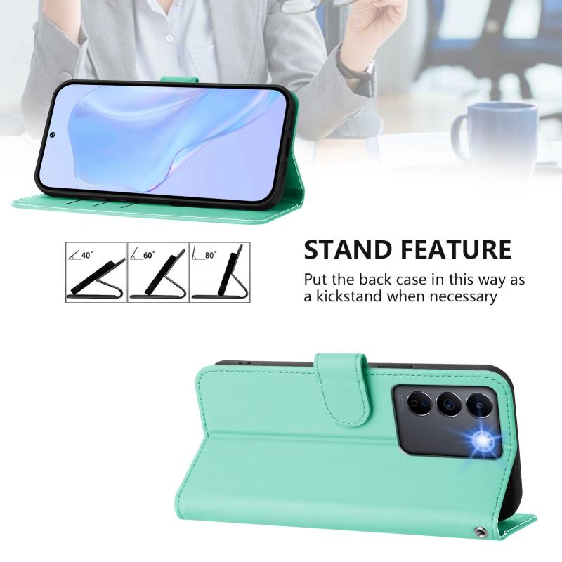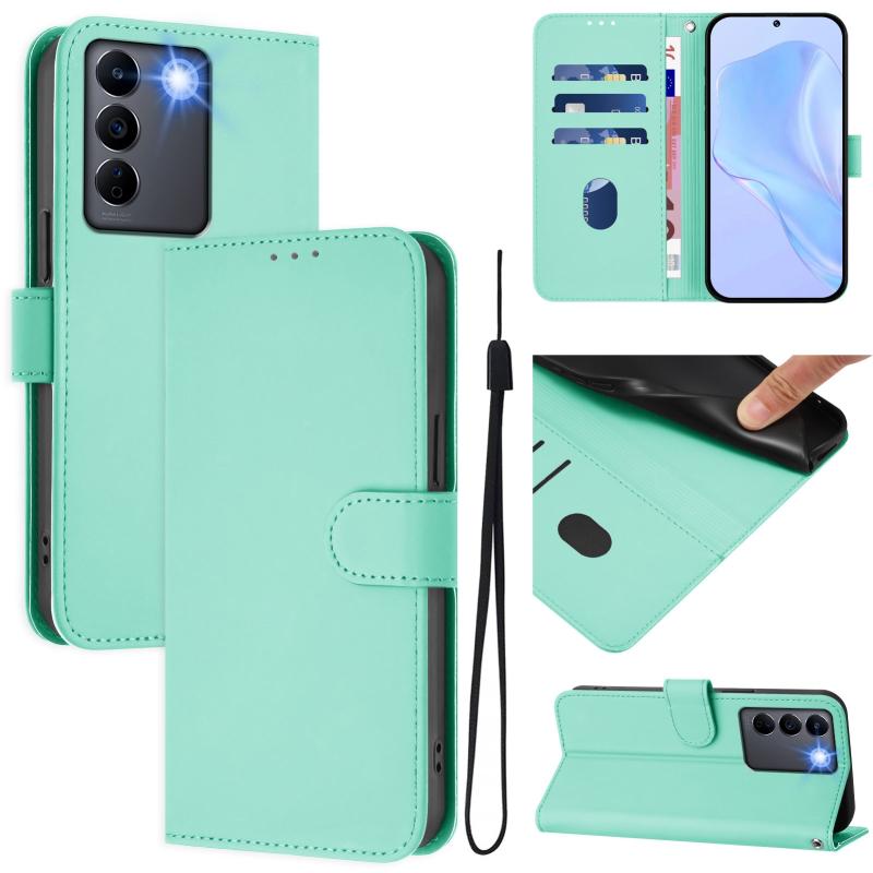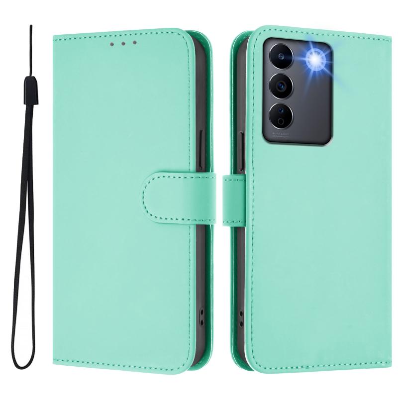 For vivo V27E 4G Global / T2 4G Global Skin Feel Solid Color Leather Phone Case with Lanyard(Mint Green)