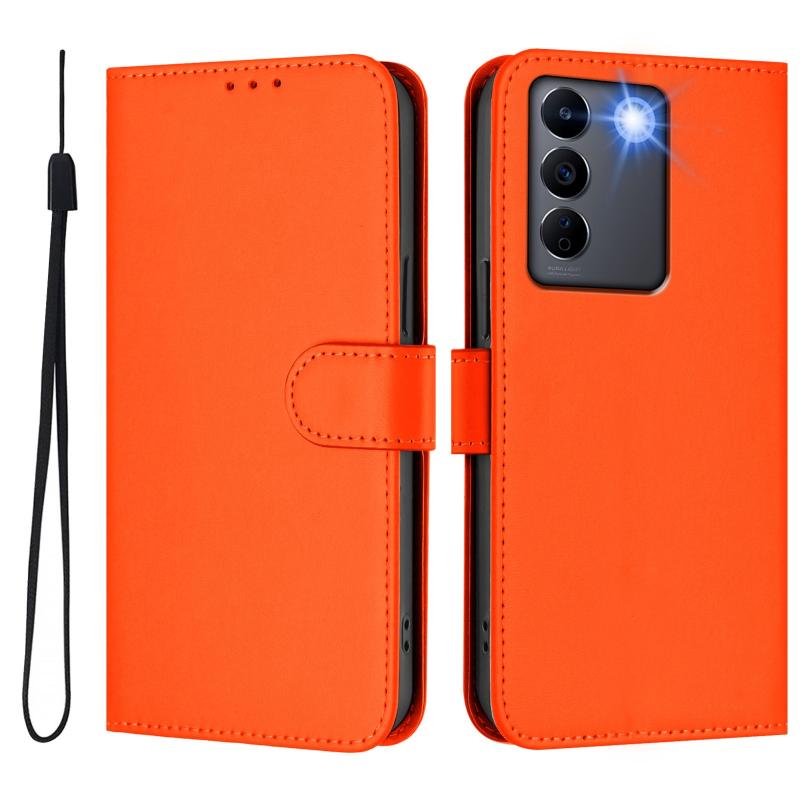 For vivo V27E 4G Global / T2 4G Global Skin Feel Solid Color Leather Phone Case with Lanyard(Orange)