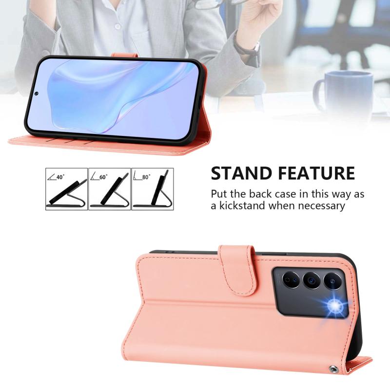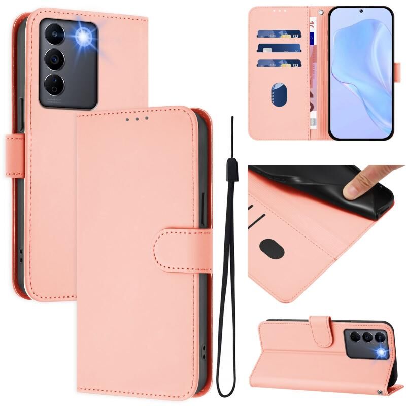 Θήκη τηλεφώνου από δέρμα με συμπαγή χρώμα για vivo V27E 4G Global / T2 4G Global με κορδόνι (Καφέ)