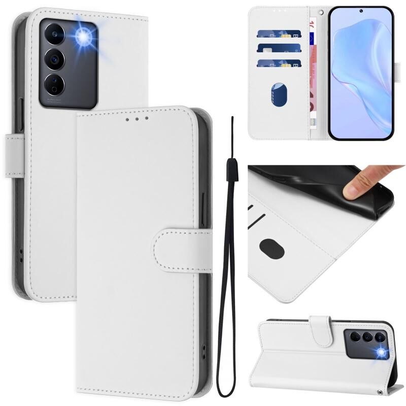 Θήκη τηλεφώνου από δέρμα με συμπαγή χρώμα για vivo V27E 4G Global / T2 4G Global με κορδόνι (Καφέ)