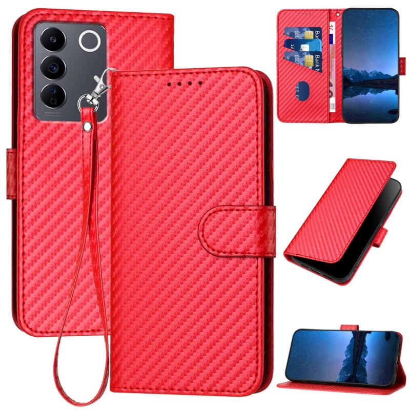 Θήκη τηλεφώνου από δέρμα με αγκράφα από ανθρακονήματα και λουρί για vivo V27e 4G Global / T2 4G Global YX0070 (Κόκκινο)