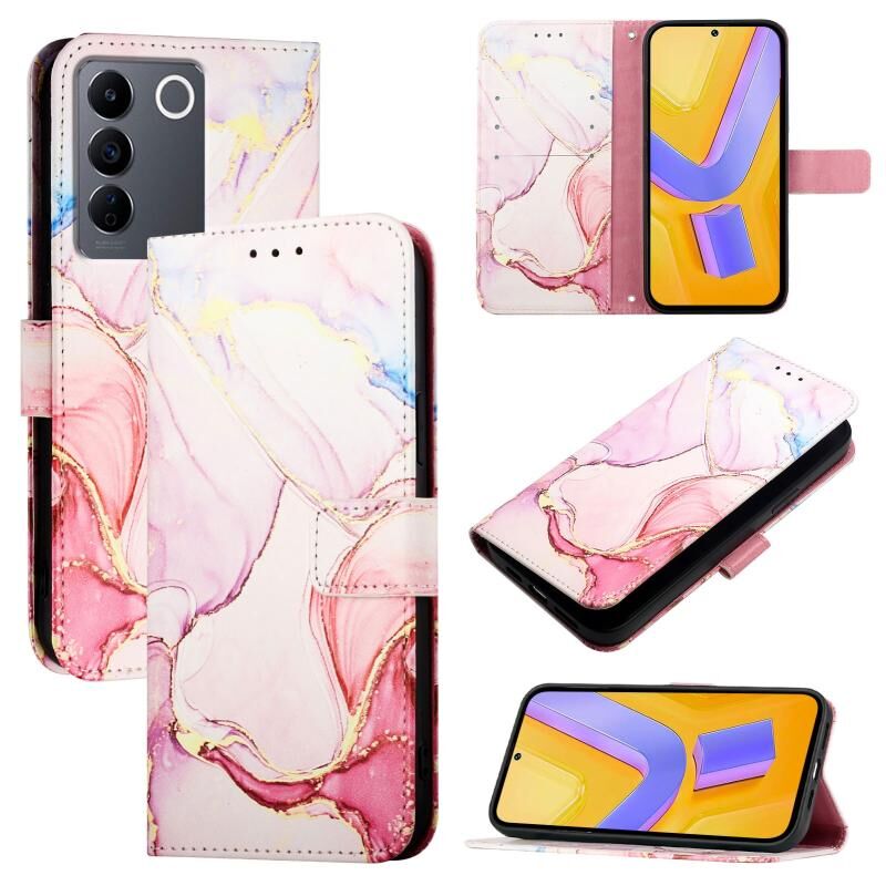 Θήκη τηλεφώνου από δέρμα με σχέδιο μαρμάρου για vivo V27e 4G / T2 4G Global PT003 (Ροζ χρυσός)