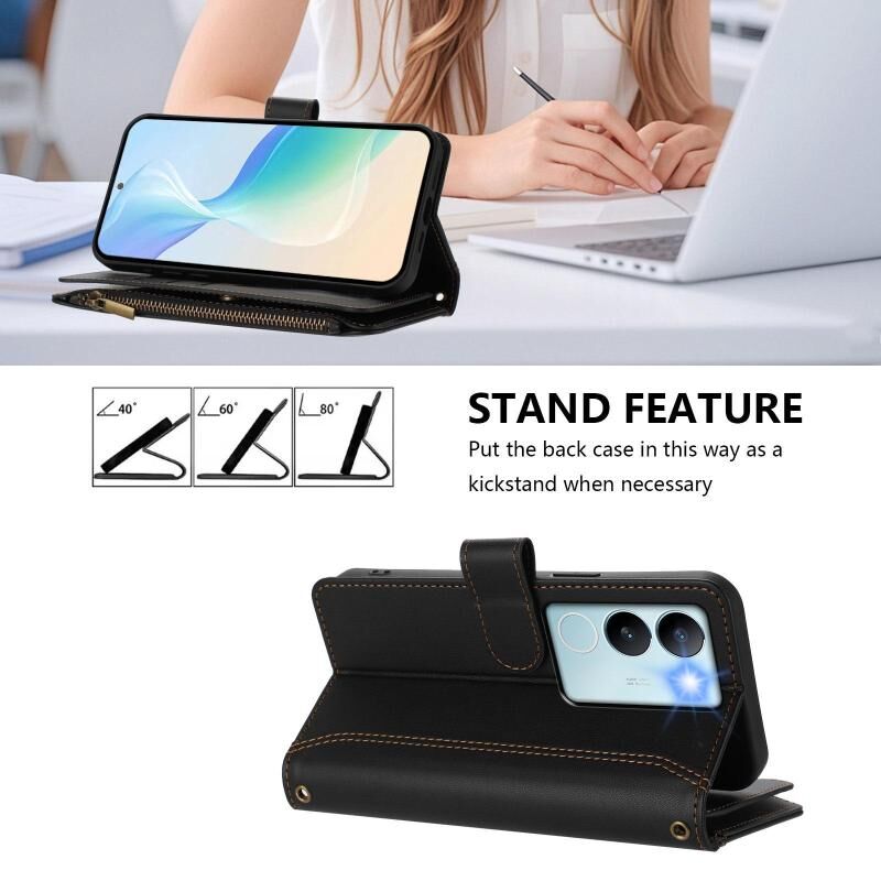 Για vivo V29 5G Global Μαγνητικό Κλείσιμο 9 Θήκες Καρτών Δερμάτινη Θήκη με Φερμουάρ και Λουρί Χεριού (Μαύρο)