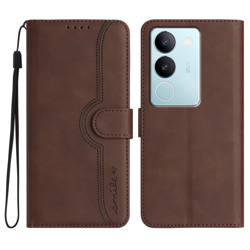 Θήκη τηλεφώνου από δέρμα με υφή καρδιάς για vivo V29 5G Global/V29 Pro (Καφέ)