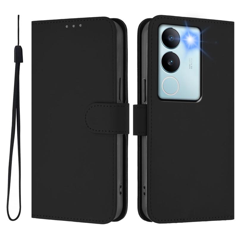 Θήκη τηλεφώνου από δέρμα με συμπαγή χρώματα και λουρί για vivo V29 5G Global / V29 Pro (Καφέ)