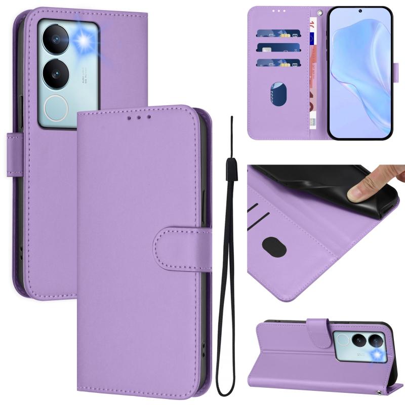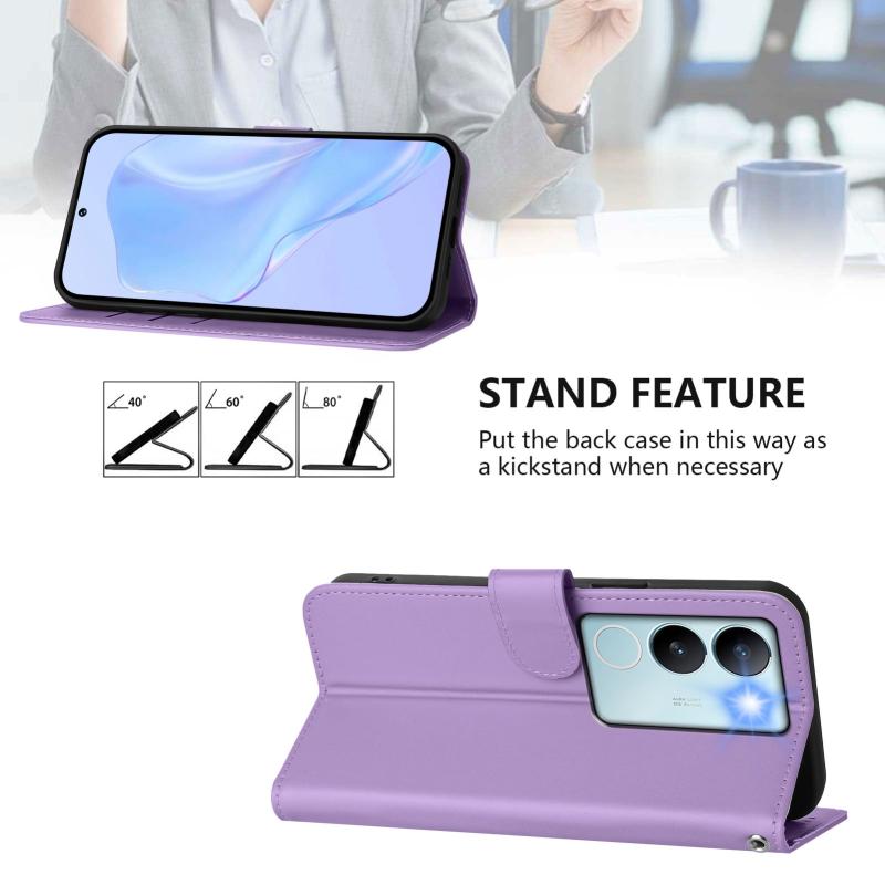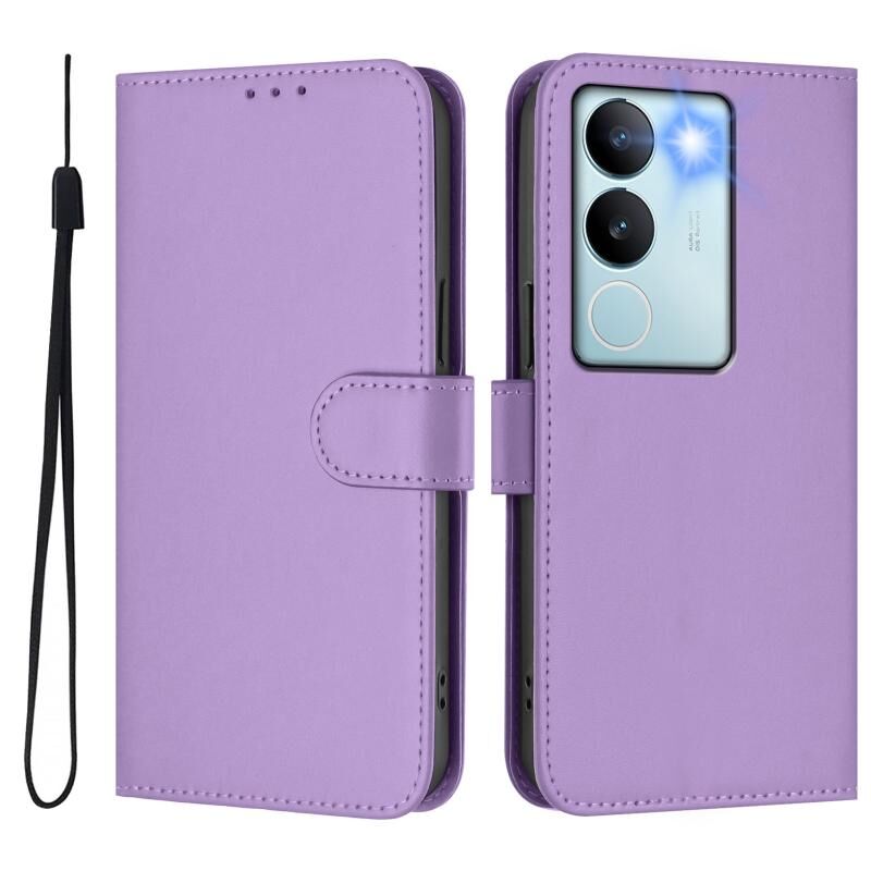 Θήκη τηλεφώνου από δέρμα με συμπαγή χρώματα και λουρί για vivo V29 5G Global / V29 Pro (Καφέ)
