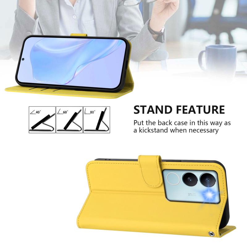 For vivo V29 5G Global / V29 Pro Skin Feel Solid Color Leather Phone Case with Lanyard(Lemon Yellow)
