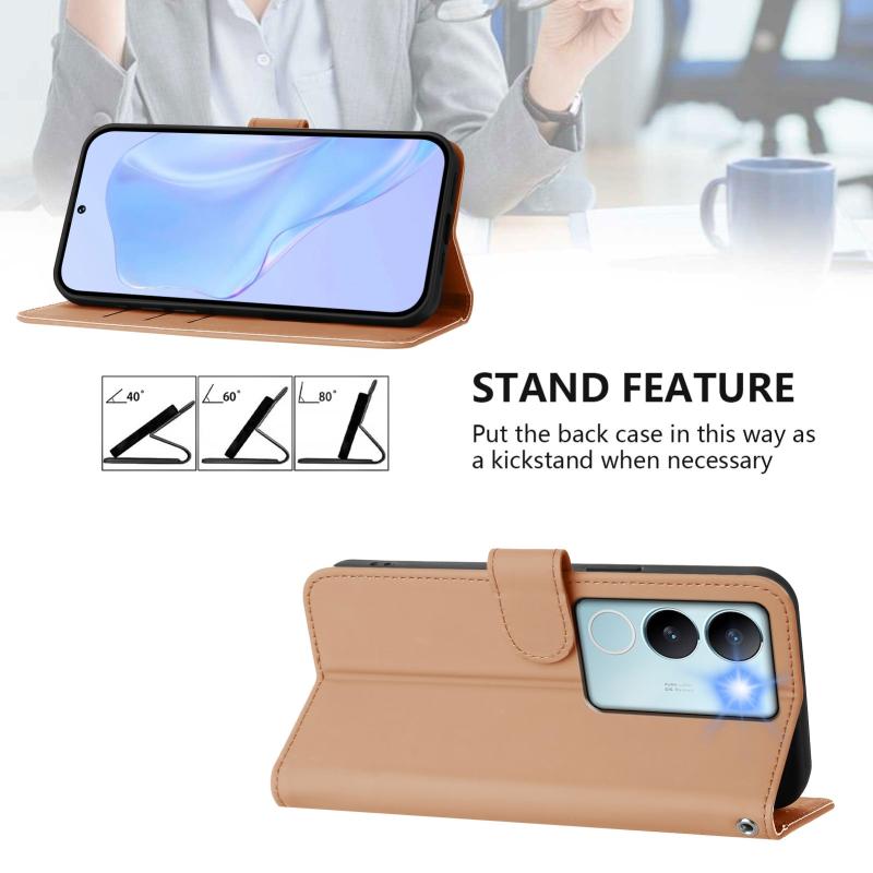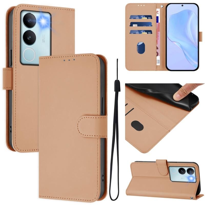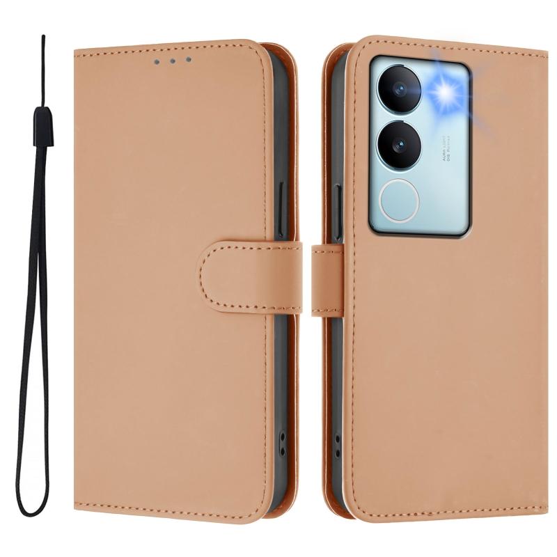 Θήκη τηλεφώνου από δέρμα με υφή, συμπαγούς χρώματος για vivo V29 5G Global / V29 Pro με κορδόνι (Γυμνό)