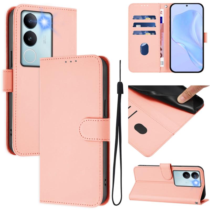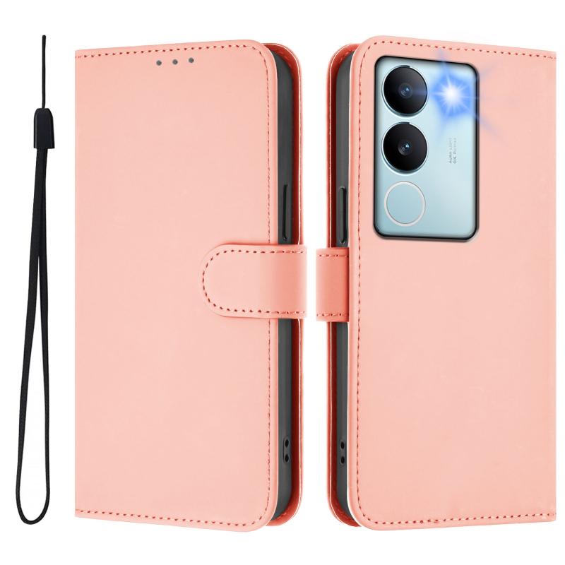 Θήκη τηλεφώνου από δέρμα με συμπαγή χρώματα και λουρί για vivo V29 5G Global / V29 Pro (Καφέ)