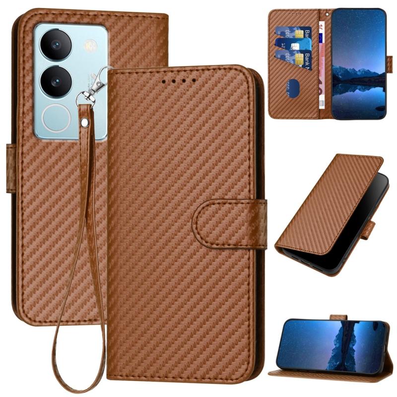 Θήκη τηλεφώνου από δέρμα με πόρπη από ανθρακονήματα για vivo V29 5G Global / V29 Pro YX0070 με κορδόνι (Καφέ)