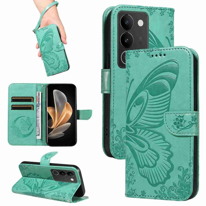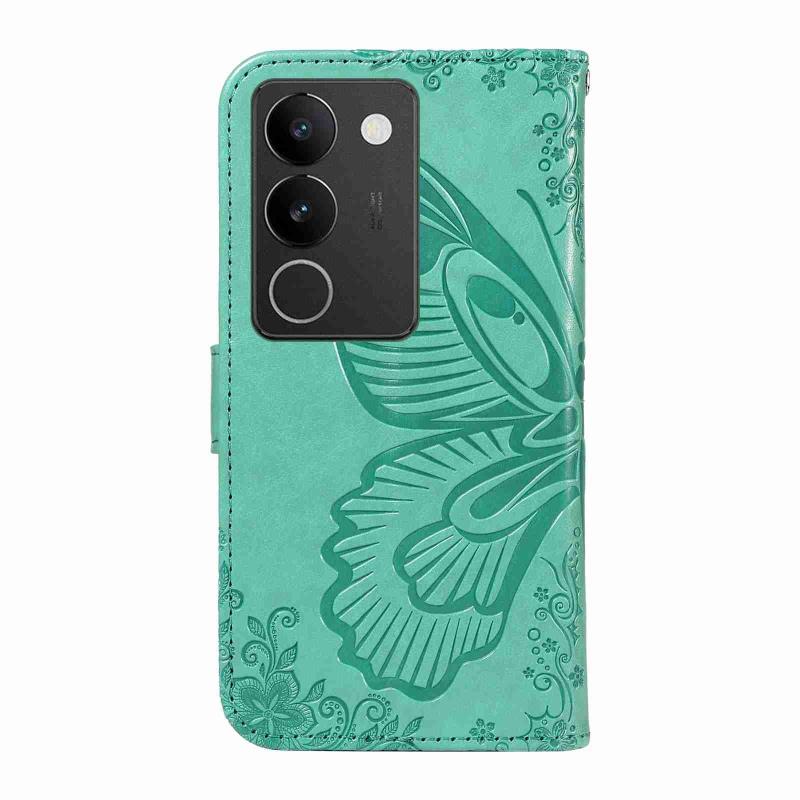 For vivo V29 5G Swallowtail Butterfly Embossed Leather Phone Case(Green)
