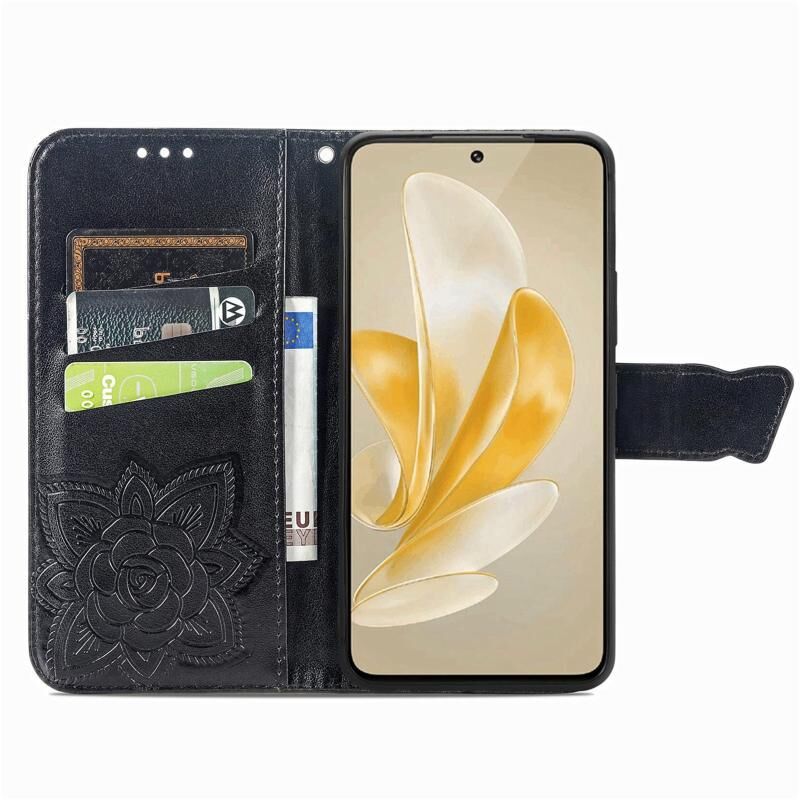 Θήκη τηλεφώνου από δέρμα με ανάγλυφο σχέδιο πεταλούδας και λουλουδιών για vivo V29 Lite (Μαύρο)