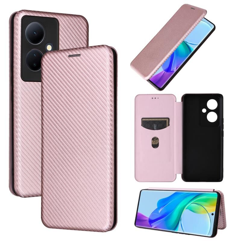 Θήκη τηλεφώνου από δέρμα με σχέδιο ανθρακονήματος για vivo V29 Lite (Μαύρο)