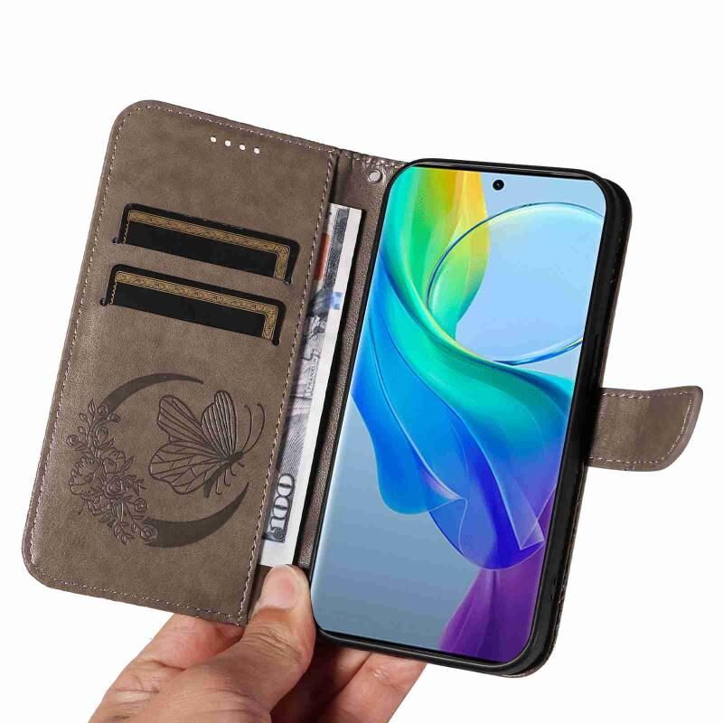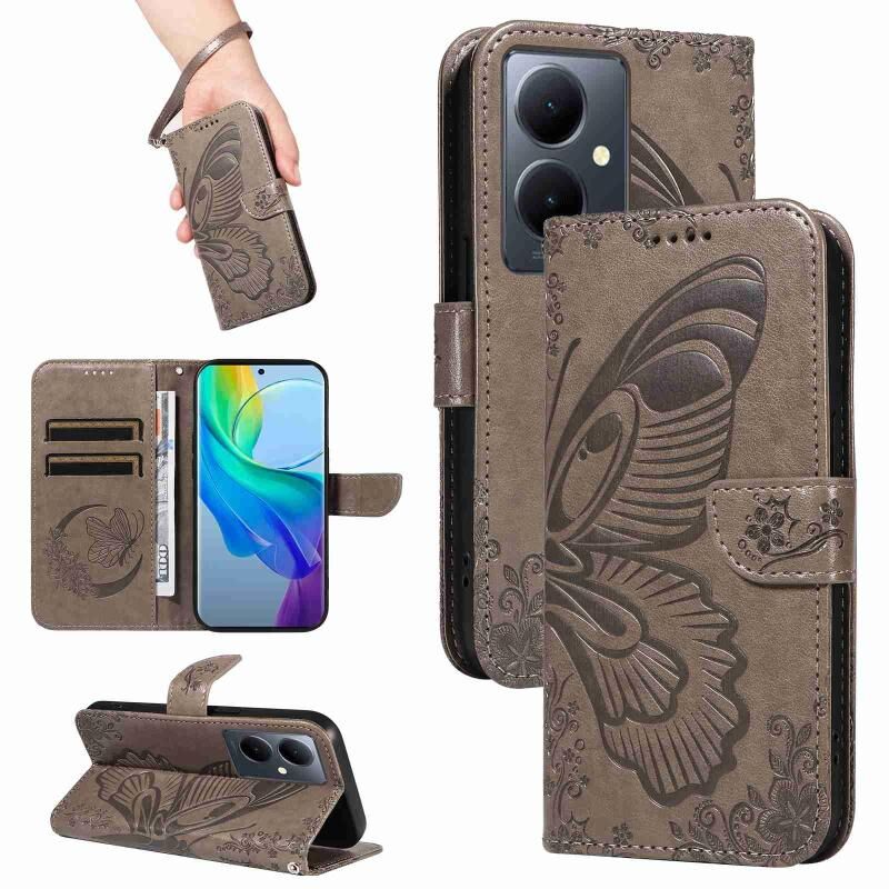 Θήκη τηλεφώνου από δέρμα με ανάγλυφο σχέδιο πεταλούδας Swallowtail για vivo V29 Lite / Y78 5G / Y78+ 5G (Μπλε)