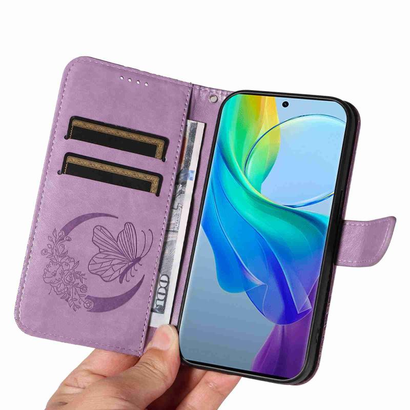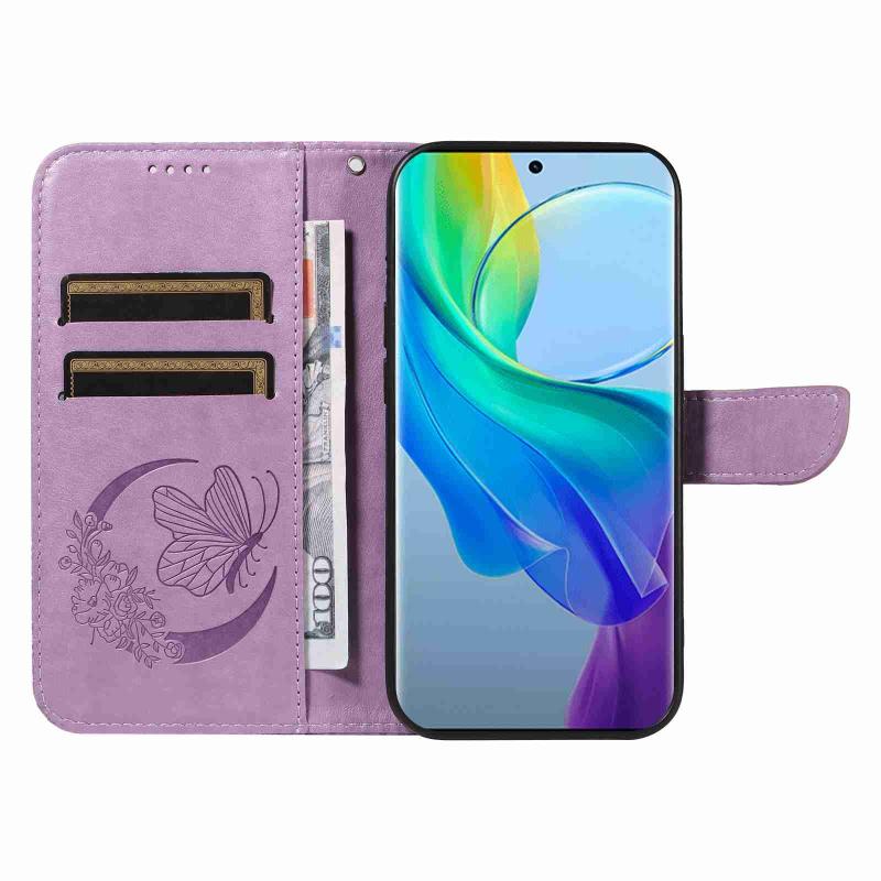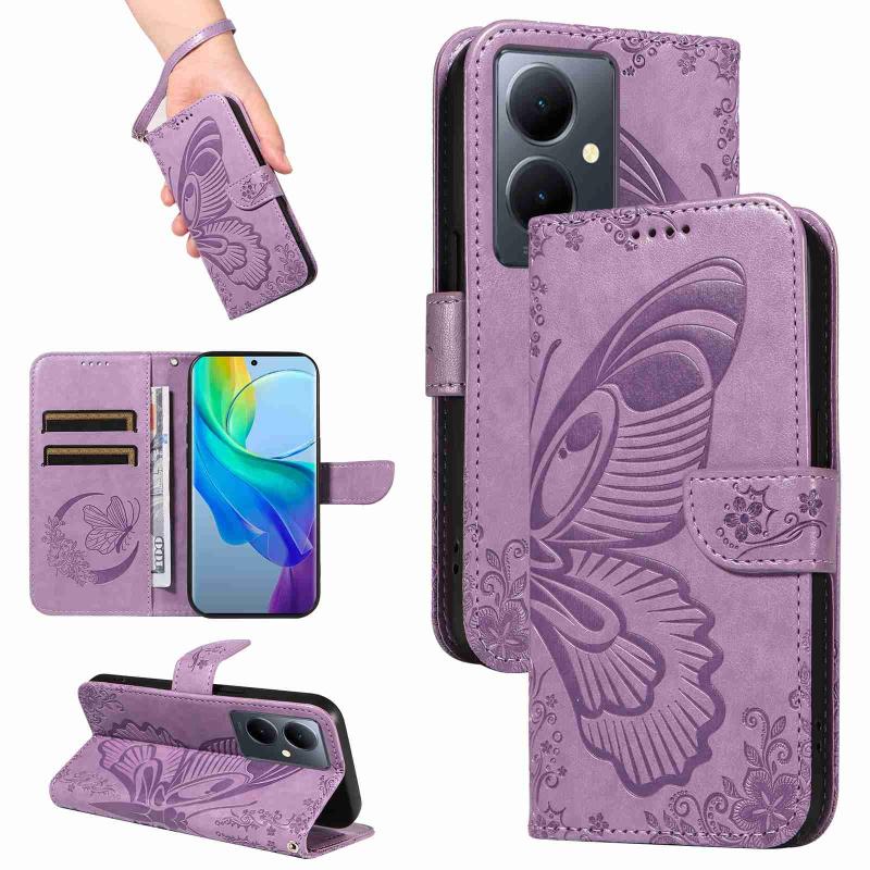 For vivo V29 Lite / Y78 5G / Y78+ 5G Swallowtail Butterfly Embossed Leather Phone Case(Purple)