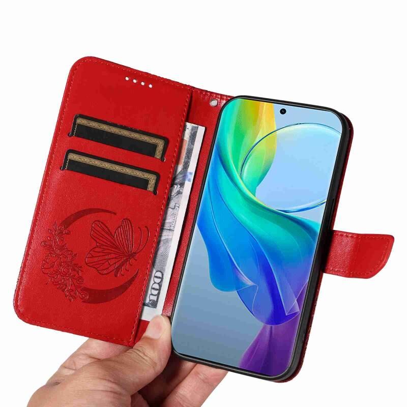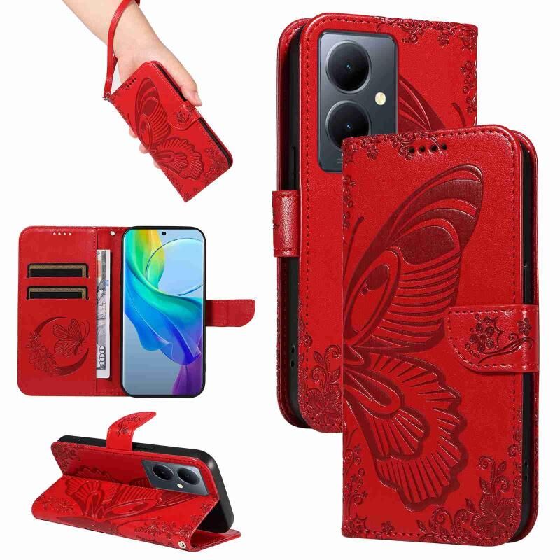 Θήκη τηλεφώνου από δέρμα με ανάγλυφο σχέδιο πεταλούδας Swallowtail για vivo V29 Lite / Y78 5G / Y78+ 5G (Μπλε)