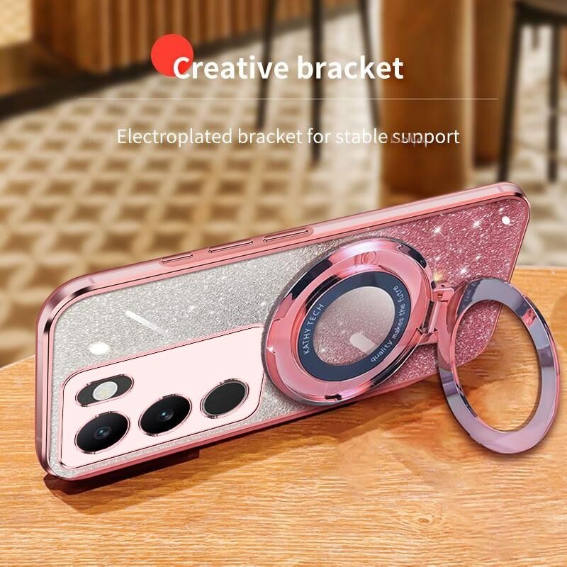 Θήκη τηλεφώνου TPU με στρογγυλό στήριγμα, γυαλιστερό ντεγκραντέ επιμετάλλευσης για vivo V29 / V29 Pro (Ροζ)