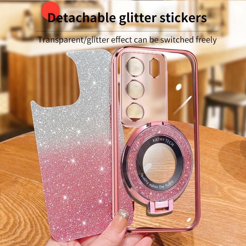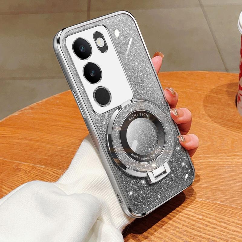 For vivo V29 / V29 Pro Plated Gradient Glitter Round Holder TPU Phone Case(Silver)