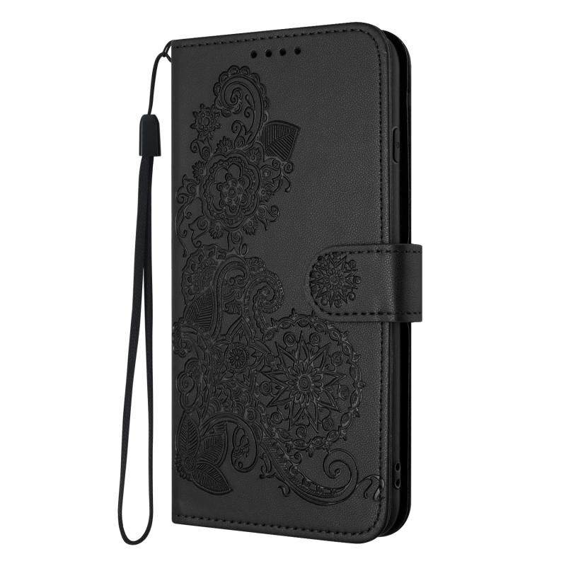 Για vivo V29e 5G Global / Y200 5G Global Datura λουλούδι ανάγλυφο Flip δερμάτινη θήκη τηλεφώνου (Μαύρο)