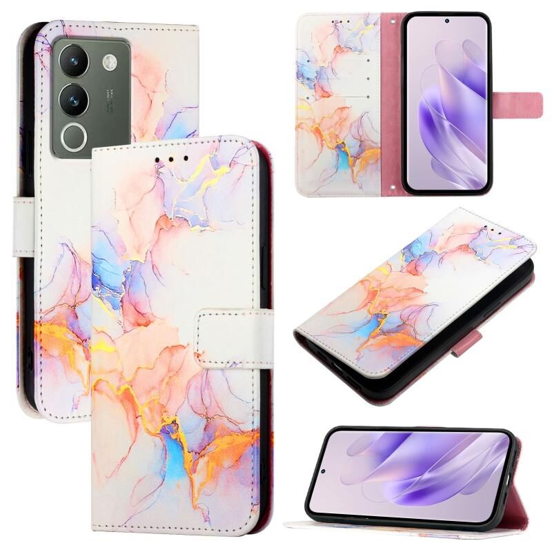 Θήκη τηλεφώνου από δέρμα με σχέδιο μαρμάρου για vivo V29e 5G Global / Y200 5G Global PT003 (Ροζ Μωβ Χρυσό)