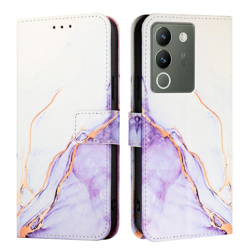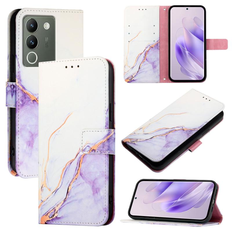 For vivo V29e 5G Global / Y200 5G Global PT003 Marble Pattern Flip Leather Phone Case(White Purple)