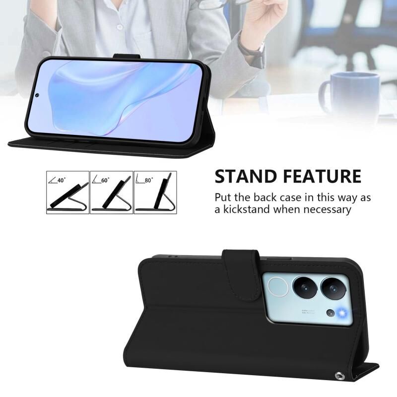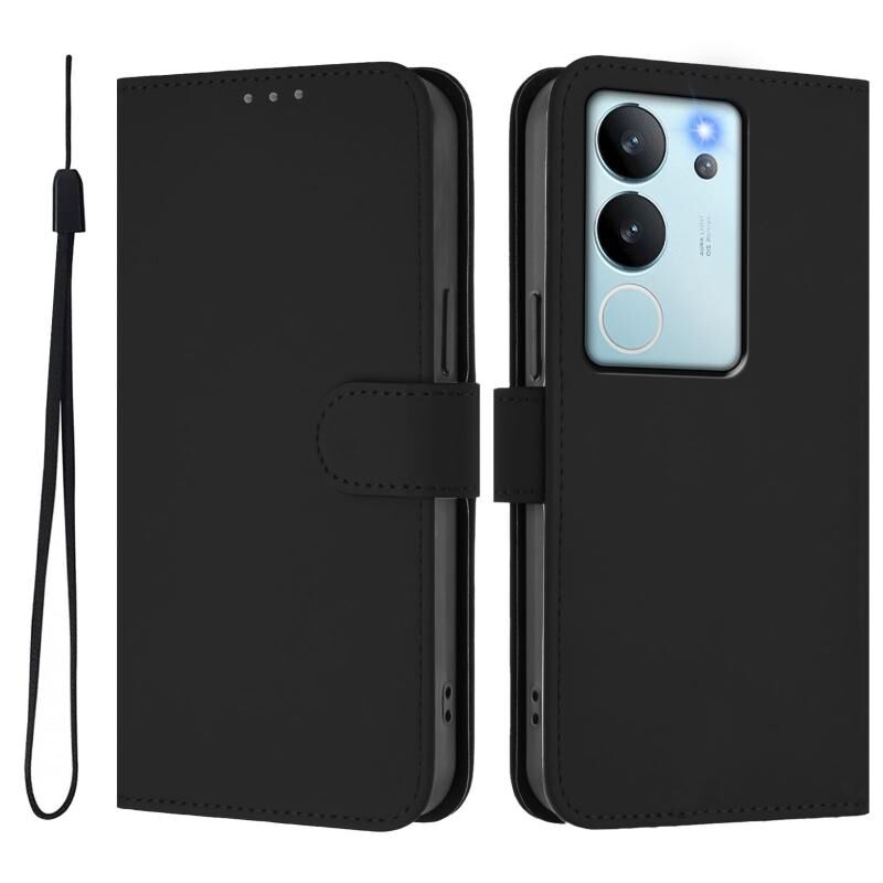 Θήκη τηλεφώνου από δέρμα με συμπαγή χρώματα και κορδόνι για vivo V29E 5G Global / Y200 5G Global (Μαύρο)