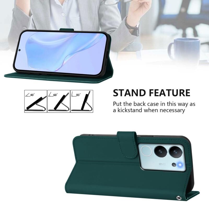 Θήκη τηλεφώνου από δέρμα με συμπαγή χρώματα και κορδόνι για vivo V29E 5G Global / Y200 5G Global (Καφέ)