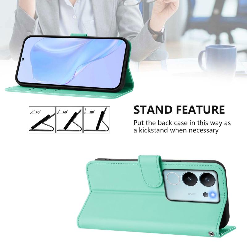 For vivo V29E 5G Global / Y200 5G Global Skin Feel Solid Color Leather Phone Case with Lanyard(Mint Green)