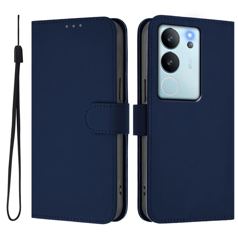 For vivo V29E 5G Global / Y200 5G Global Skin Feel Solid Color Leather Phone Case with Lanyard(Navy Blue)