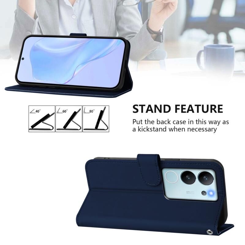 Θήκη τηλεφώνου από δέρμα με συμπαγή χρώματα και κορδόνι για vivo V29E 5G Global / Y200 5G Global (Ναυτικό μπλε)