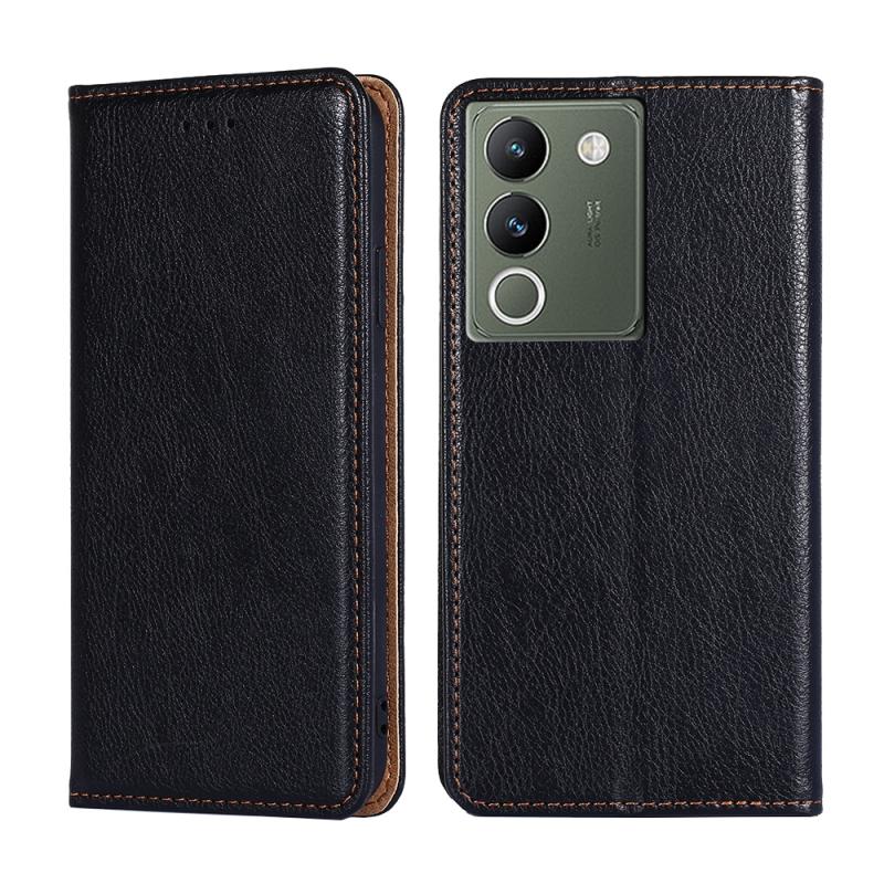 Θήκη τηλεφώνου από δέρμα με μαγνητική έλξη, συμπαγούς χρώματος και γυαλιστερό λάδι για vivo V29e 5G (Μαύρο)