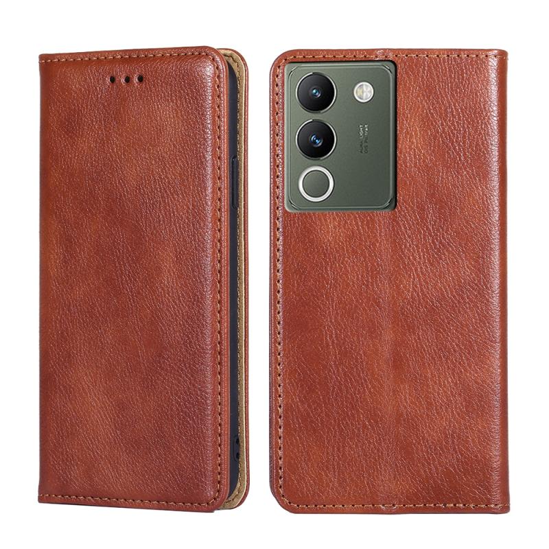 Θήκη τηλεφώνου από δέρμα με μαγνητική έλξη, συμπαγούς χρώματος και γυαλιστερό λάδι για vivo V29e 5G (Καφέ)