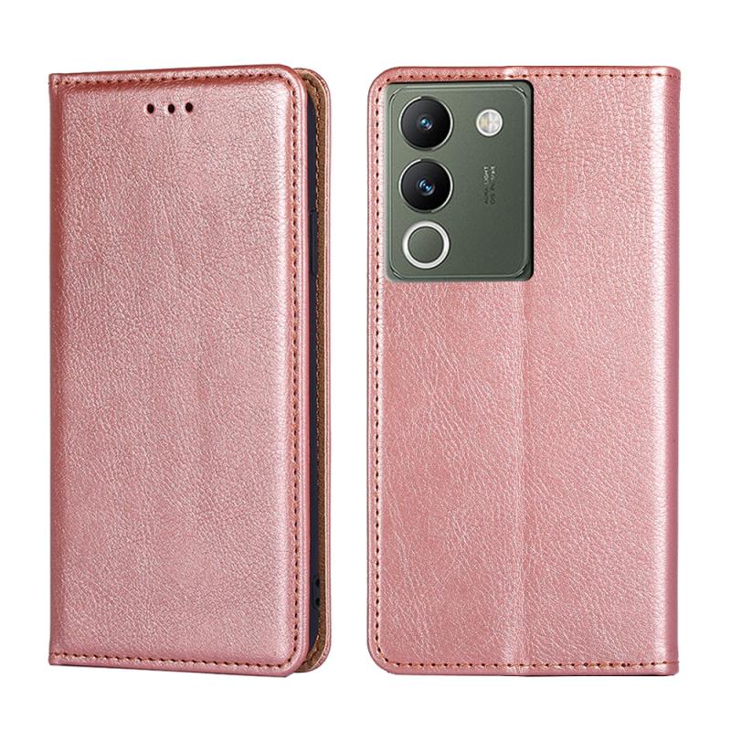 Θήκη τηλεφώνου από δέρμα με μαγνητική έλξη, συμπαγούς χρώματος και γυαλιστερό λάδι για vivo V29e 5G (Ροζ χρυσός)