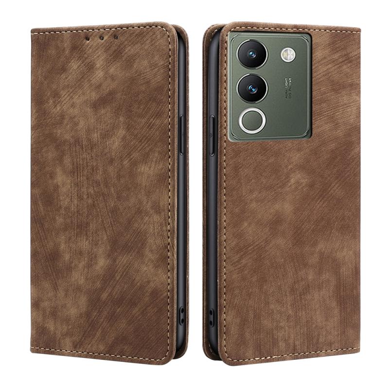 Θήκη τηλεφώνου για vivo V29e 5G RFID αντι-κλοπής με μαγνητική δερμάτινη επιφάνεια (Καφέ)