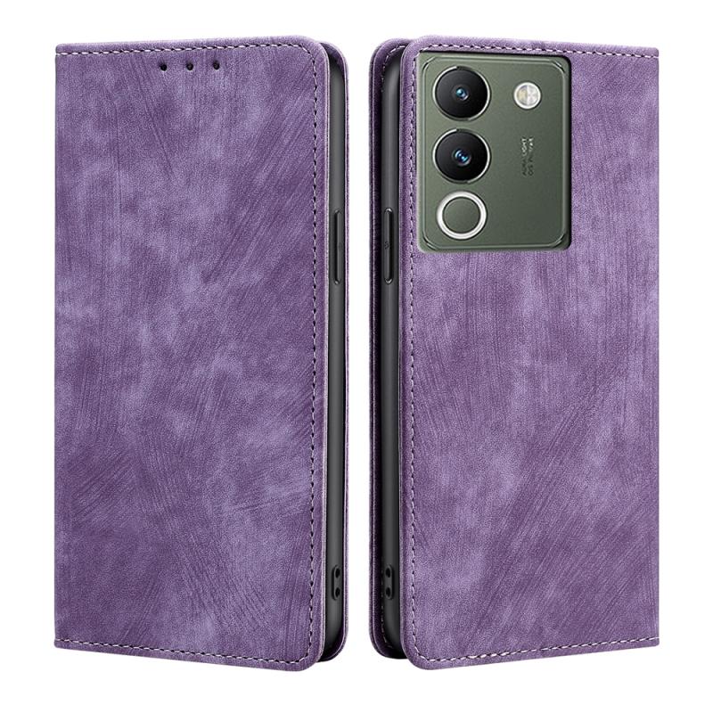 Θήκη τηλεφώνου για vivo V29e 5G RFID αντι-κλοπής με μαγνητική δερμάτινη επιφάνεια (Μωβ)