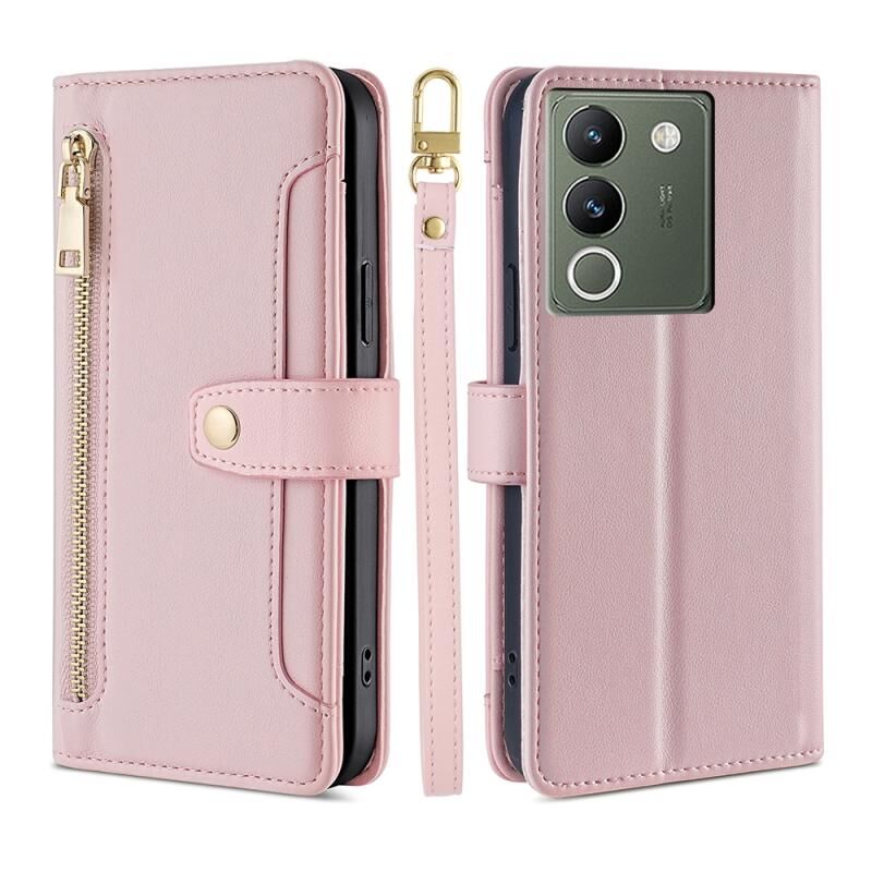 Θήκη τηλεφώνου δερμάτινη με φερμουάρ και σχέδιο αρνιού για vivo V29e 5G (Μαύρο)