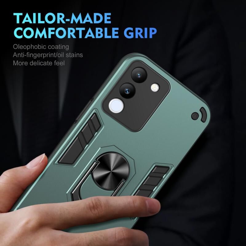 Θήκη τηλεφώνου για vivo V29e 5G, ανθεκτική στις κρούσεις, με μεταλλική βάση δακτυλιδιού (πράσινο)