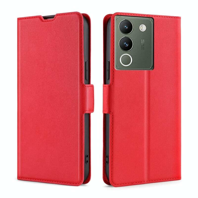 Θήκη τηλεφώνου δερμάτινη, οριζόντια, αναδιπλούμενη, με λεπτό σχεδιασμό και πλευρική αγκράφα για vivo V29e 5G (Κόκκινο)