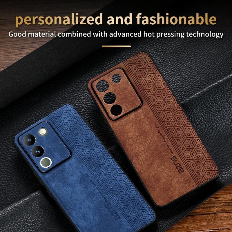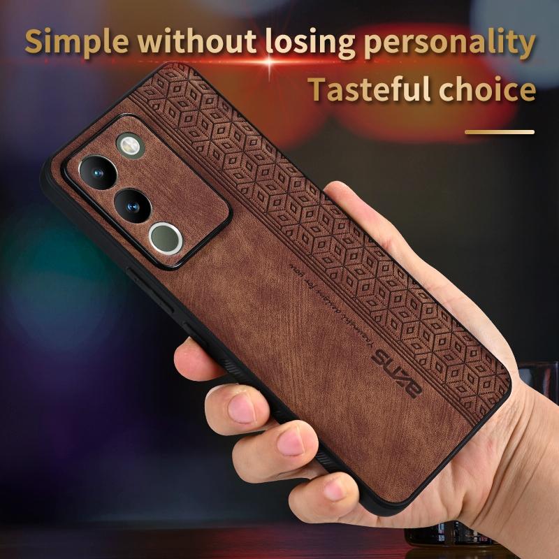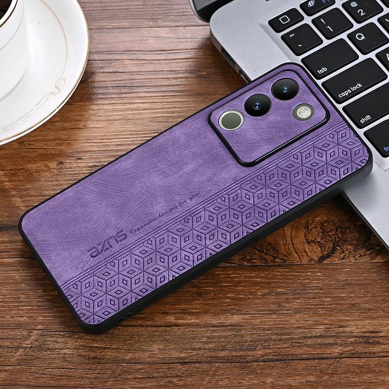 Θήκη τηλεφώνου με ανάγλυφη υφή δέρματος 3D για vivo V29e 5G / Y200 5G AZNS (Καφέ) (Μωβ)