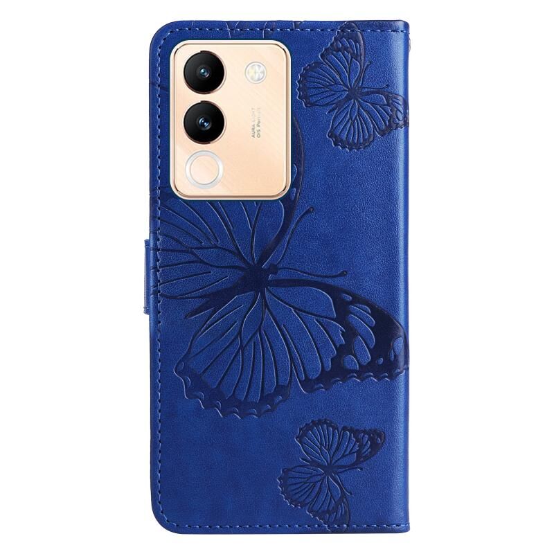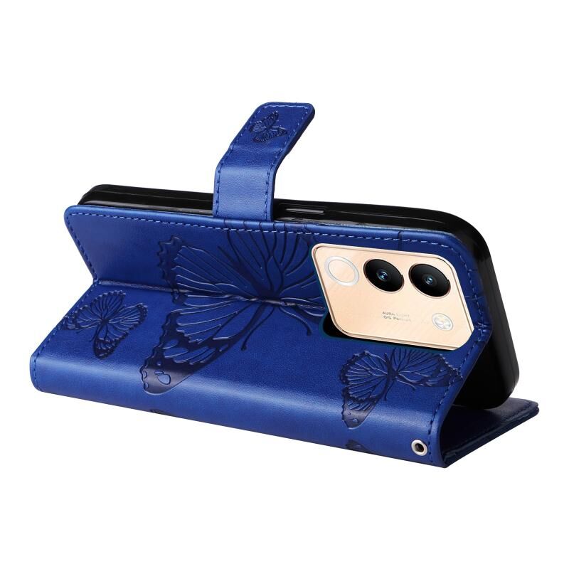 Θήκη τηλεφώνου από δέρμα με ανάγλυφο 3D πεταλούδας, τύπου flip, για vivo V29e Global / Y200 5G Global (Μωβ)