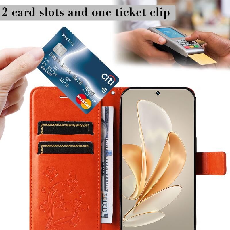 Θήκη τηλεφώνου από δέρμα με ανάγλυφο 3D πεταλούδας, τύπου flip, για vivo V29e Global / Y200 5G Global (Πορτοκαλί)