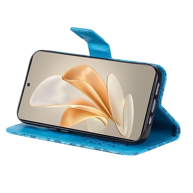Για vivo V29e Παγκόσμια / Y200 5G Παγκόσμια ανάγλυφο ηλιοτρόπιο μοτίβο Flip δέρμα τηλέφωνο υπόθεση (Μπλε)