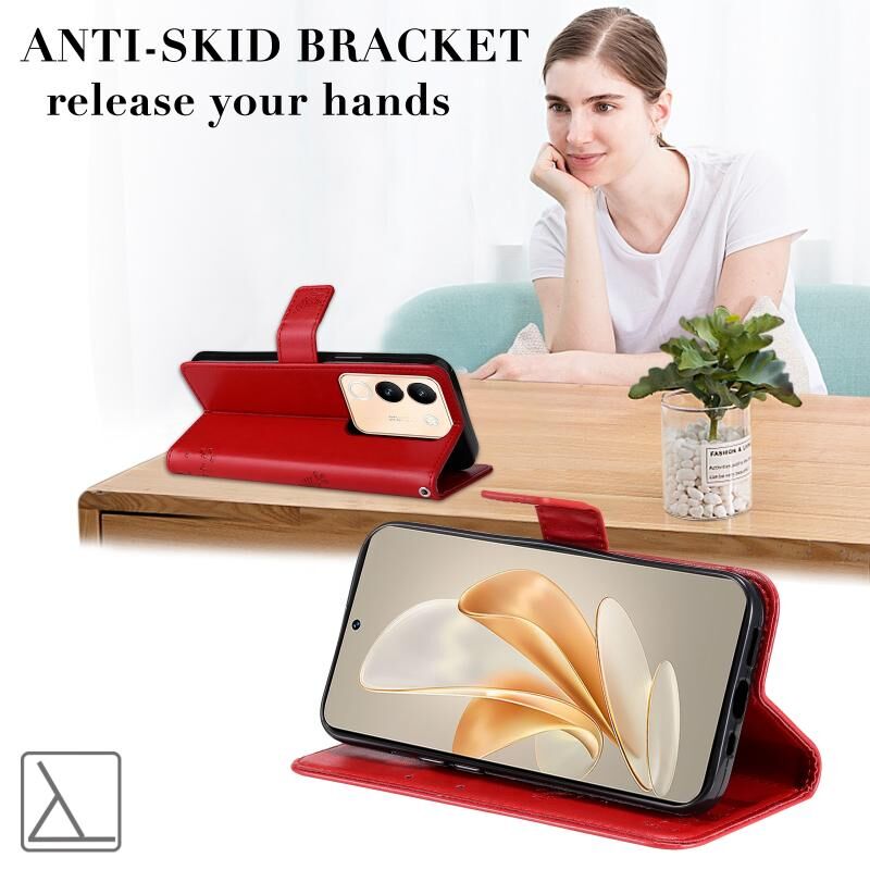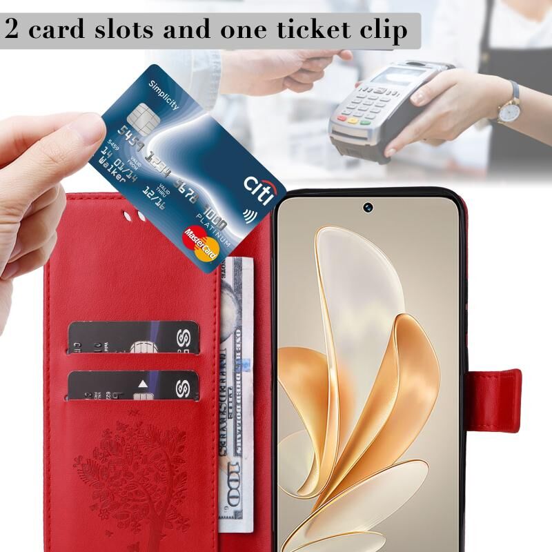 Για το vivo V29e Global / Y200 5G Global Tree & Cat ανάγλυφο μοτίβο Flip δερμάτινη θήκη τηλεφώνου (Κόκκινο)